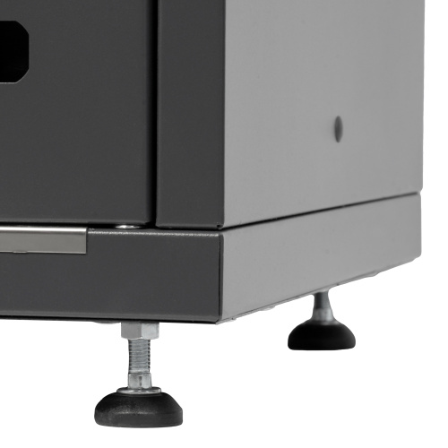 - A hulladékgyűjtő szerkezete két csúszásmentes, állítható lábon és két görgőn áll.
